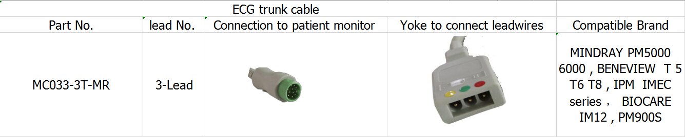 Kabel kabel 3-lead ECG untuk BENEVIEW T5 T6 T8, BIOCARE IM12, PM900S